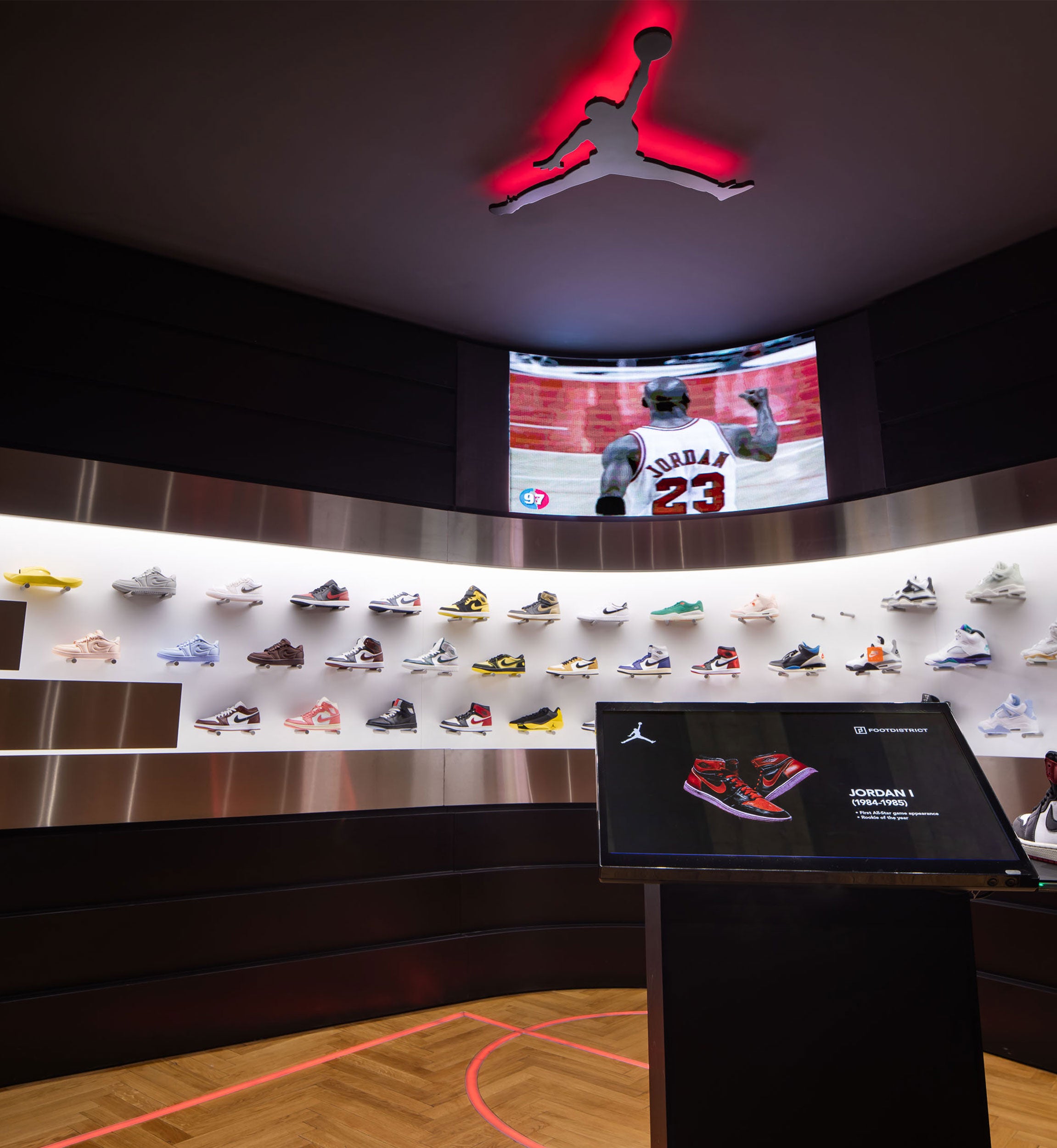 Stap binnen in de “Jordan Room” bij FOOTDISTRICT MADRID. Kies een van de modellen die Michael Jordan op het veld droeg, plaats het op de speciale tray en beleef een interactieve reis door het erfgoed van His Airness.